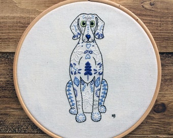 Embroidery kit, weimaraner, hand embroidery, sewing kit, embroidery designs, dog, sewing gift, embroidery pattern, embroidery hoop art, cute
