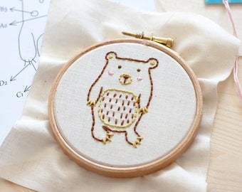 Bear Contemporary Embroidery Kit - Embroidery Hoop Art - Learn How to Embroider - Hand Embroidery Kit - Craft Kit - Embroidery Pattern
