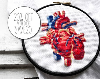 Cross stitch kit modern HALLOWEEN HEART complete embroidery kit fabric yarn needle wood embroidery hoop cross stich pattern anatomy heart