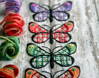 Embroidery Kit, butterfly embroidery kit, butterflies on white wash board, crewel embroidery kit, Prairie Garden