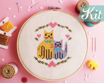 Cross Stitch KITs,Cats cross stitch sample,Modern cross stitch,Romantic cross stitch,Beginner kits,Embroidery kits,DIY kits- Kittens in LOVE