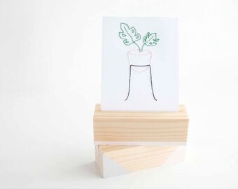DIY Embroidery Kit, Stitch Kit, 4 cards and handpainted timber card stand, Plant stand, pot plant, gift for plant lover, Modern Embroidery