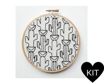 Cactus Embroidery Kit, Modern Blackwork, DIY Gift Idea, Hand Embroidery Kit, Cacti Blackwork, Nature Embroidery Kit, Blackwork Embroidery