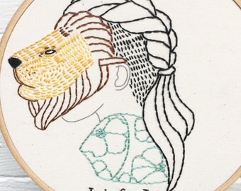 Embroidery Kit, Hand Embroidery Kit, L is for Lion Embroidery Kit