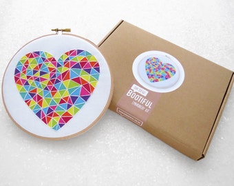 Beginner Embroidery Kit, DIY Valentines Gift, Geometric Heart Hoop Art, Easy Needlecraft Set, Starter Embroidery, Easy Needlework, LGBT Gift