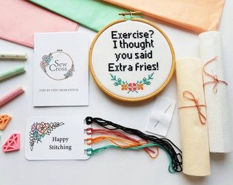 Funny Cross Stitch - Modern Cross Stitch Kit - Floral Cross Stitch - Cross Stitch Beginners Kit - Embroidery Kit - DIY Kit - UK - Quote