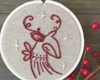 Embroidery Kit Red Woodland Deer. Embroidery Wall Art. Hand Embroidery Pattern. DIY Nursery Decor. Gifts for Crafters. Gifts under 30.