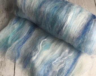 Merino, 19 Micron, Super Fine, 108g, Roving, spinning, felting, hand painted, blues, white, 313