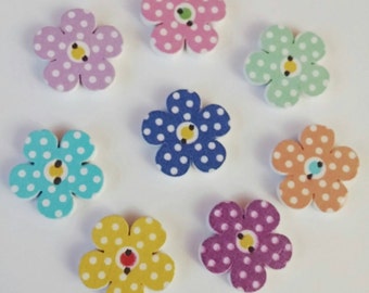 Wooden Polka Dot Flower Buttons x 8