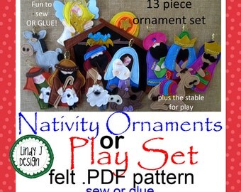 Felt NATIVITY PLAYSET or ORNAMENTS for Children .Pdf Pattern