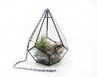 Hanging Terrarium - Large Teardrop / Geometric Stained Glass Terrarium