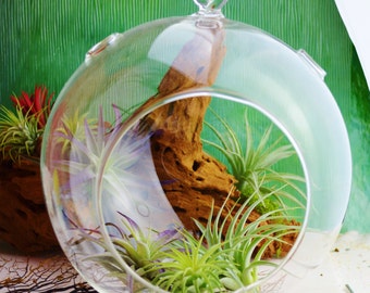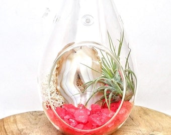 DIY Agate Slice Crystal Air Plant Terrarium Kit ~ Includes 6.75" Clear Glass Hanging Terrarium, Crystals, and Tillandsia Plant Gift