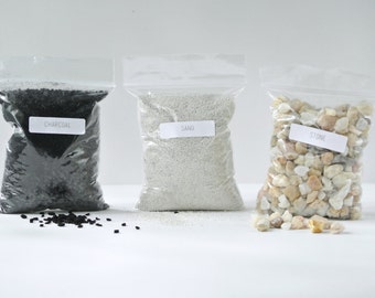 Terrarium Supply 3 Pack - Sand, Stone and Charcoal ( For Large & Medium Terrariums ) Terrarium , DIY, Supplies