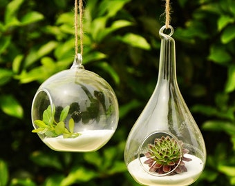Air Plant Hanging Holder/Teardrop Terrarium Planter/4 Inches Orb Terrarium /Indoor Planter Gardening/Hanging Candle Holders