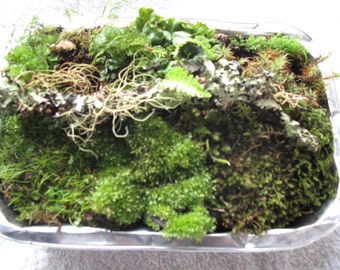 Small terrarium pack. Moss, ferns, forest plants, mossy wood.