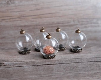 Set of 5 Miniature Round Glass Terrarium Bottle with Flat Base, Mini Glass Globes, Mini Glass Terrarium/ Mini Glass Orbs (Large / Medium)