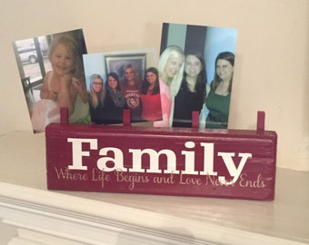 Family Picture Frame, Decorative Picture Holder, Picture Holder, Painted Block, Family Picture Holder, Photo Display