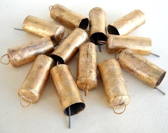 15 Golden Colored Hand Made Cow Bells for Wind Chimes Craft Art with Jute Rope - DIY - MV134