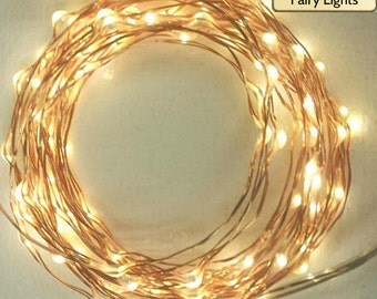 100 Fairy Lights (String Lights) on a 17-foot (5m) copper wire strand. Choose battery-operated or plug-in (Starry Lights) with a timer.