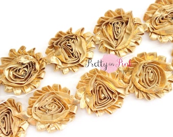 SHINY GOLD Shabby Flowers- 1/2 Yard or 1 Yard- Shabby Chiffon Trim- Wholesale Shabby Flowers- Shabby Rose Trim