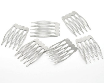 10 Silver Hair Combs - Nickel Free - Lead Free - Wedding Bridal Comb - 39mm x 26mm - Hair Clip Accessories - Silver Comb (15509)