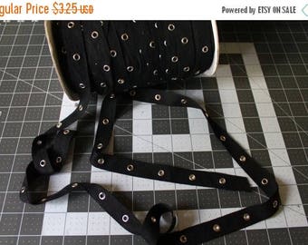 3/4" (20mm) Black Eyelet Tape with Nickle eyelets BY THE YARD