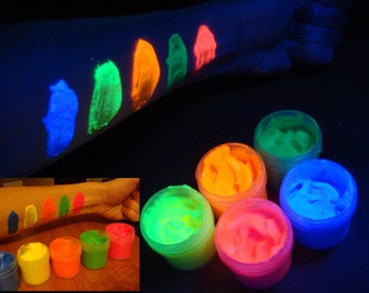Fluorescent UV body paint 5 x 0.25 oz color set - neon radiant glow non-toxic, latex free