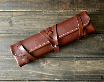 Leather Brush Roll - Personalized Brush Case - Leather Artist Roll - Custom Artist Rollup Case - Painter's Travel Bag, Sketch, Designer