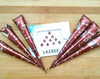 6 Natural organic Brown Color Herbal Henna Cones- Henne- Henna Paste - FREE GIFT- Temporary Tattoo Kit Body Art - Mehandi Ink - Dark Output