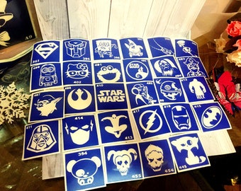 Stencils for temporary tattoos. "Superhero" set, 28 pieces. Glitter tattoo. Body art and Body design