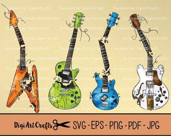 Broken Guitar Vectors / Rock Band clip art / Heavy Metal music / Rock and Roll SVGs / Rocker Clipart / Rage Music / Headbanger images