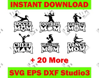Sports Mom Bundle - Soccer Football Basketball 26 In All - Cutting Cut File - SVG, EPS, DXF, and Studio3 Cricut Silhouette Studio Cameo
