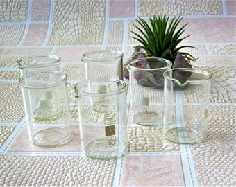 Set of 6 beakers 50mg Chemical glass Laboratory glassware Science equipment Apothecary beaker Pharmacy lab Pyrex beaker Industrial decor
