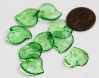 50 pcs of Acrylic leaf charm 15mm - clear green