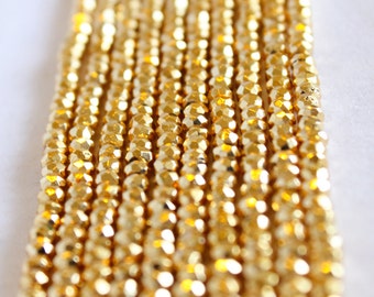 Gold Pyrite Beads - Full Strand 13.5" - 3mm x 4mm Rondelle Beads - Faceted Beads - Small Gold Beads - Wholesale Beads - Bright Gold / GB-008