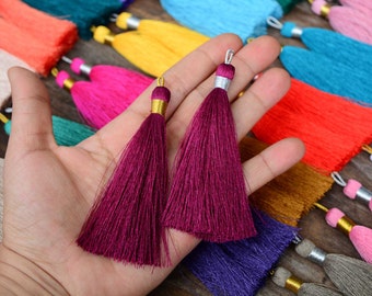Luxe Silk Tassels with braided loop, 3" (~77mm) / Beautiful Vibrant Colors, Jewelry Making Supplies, Boho Fashion / Pick Your Colors / Each