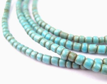 300 Vintage Turquoise Beads - 2 Strands - Blue African Glass Beads - African Seed Beads - Made in Ghana ** (GHN-SED-BLU-120)