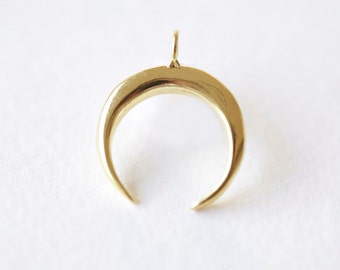 Vermeil Gold Crescent Moon Horn Pendant - C shape wish moon charm, half moon, eclipse, tusk, astrology, 18k gold plated over 925 silver