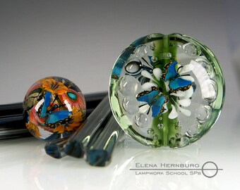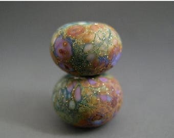 SALE Naos Glass Lily Pad Gardens Pair Made To Order Handmade Lampwork Beads SRA Artisan Glass Beads Teal Rust Tones Lilac Lavender
