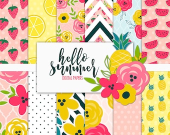 Hello Summer Digital Paper Pack | Scrapbook Paper | Printable Background | 12 JPG, 300dpi files.