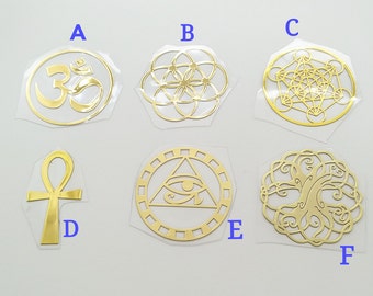 5 pieces of Flower of life sticker - metal sticker (S1)- flower of life - pyramid - powerful energy - Energy Generator