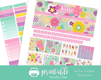 50% Off Printable Planner Stickers June Monthly View Kit! Beach Life Theme! w/ Cut Files! For Erin Condren Life Planner!