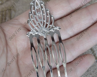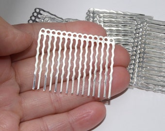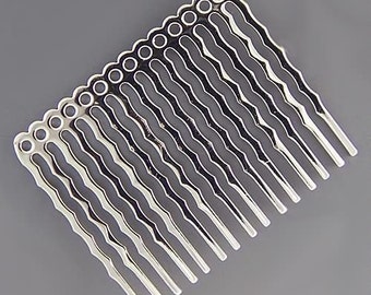 Hair Combs for Beading Silver-Plated 14 holes 42894 (6) 1.75 inch Silver Hair Combs, Blank Hair Combs, Hair Accessories Wedding Hair Combs