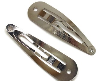10 Blank BARRETTE Snap Clips w/ Glue Pads CHOOSE COLOR (Tear Drop Shape) 50 mm/2 inches