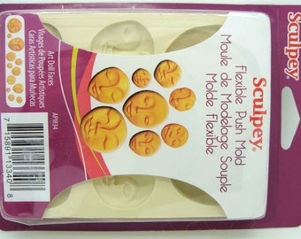 Moule Visages Face Cabochons Sculpey pour argile pâte molle plaque 12x9,5cm DIY moulage