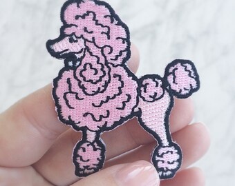 SALE - 50% Off! Fancy Pink Poodle Patch - Iron On - Embroidered Applique - Pastel - Dog