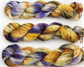 warrior hand dyed yarn sock yarn fingering yarn merino wool speckled yarn 4ply sock purple black gold 100g