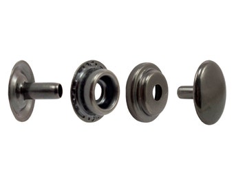Line 20 Snaps Gunmetal, 10, 50, 100 Pack, 1/2" Cap, 3/16" Post. Leather Snaps.