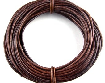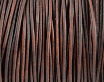 1mm Natural Antique Brown Leather Round Cord - Distressed Matte Finish - Your Choice of Length from Available Options