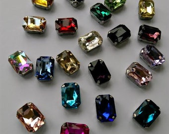 Sew On Crystals Octagon 10x14mm 13x18mm 18x25mm Octagon Rectangle glass crystal rhinestones flat back sew on in silver color prong setting